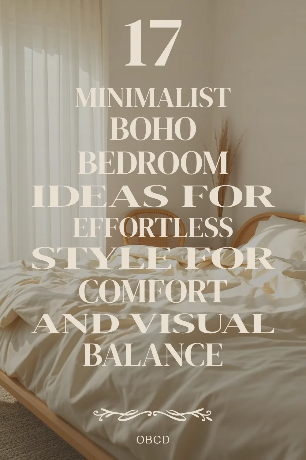 Pinterest cover for 17 Minimalist Boho Bedroom Ideas for Effortless Style for Comfort and Visual Balance
