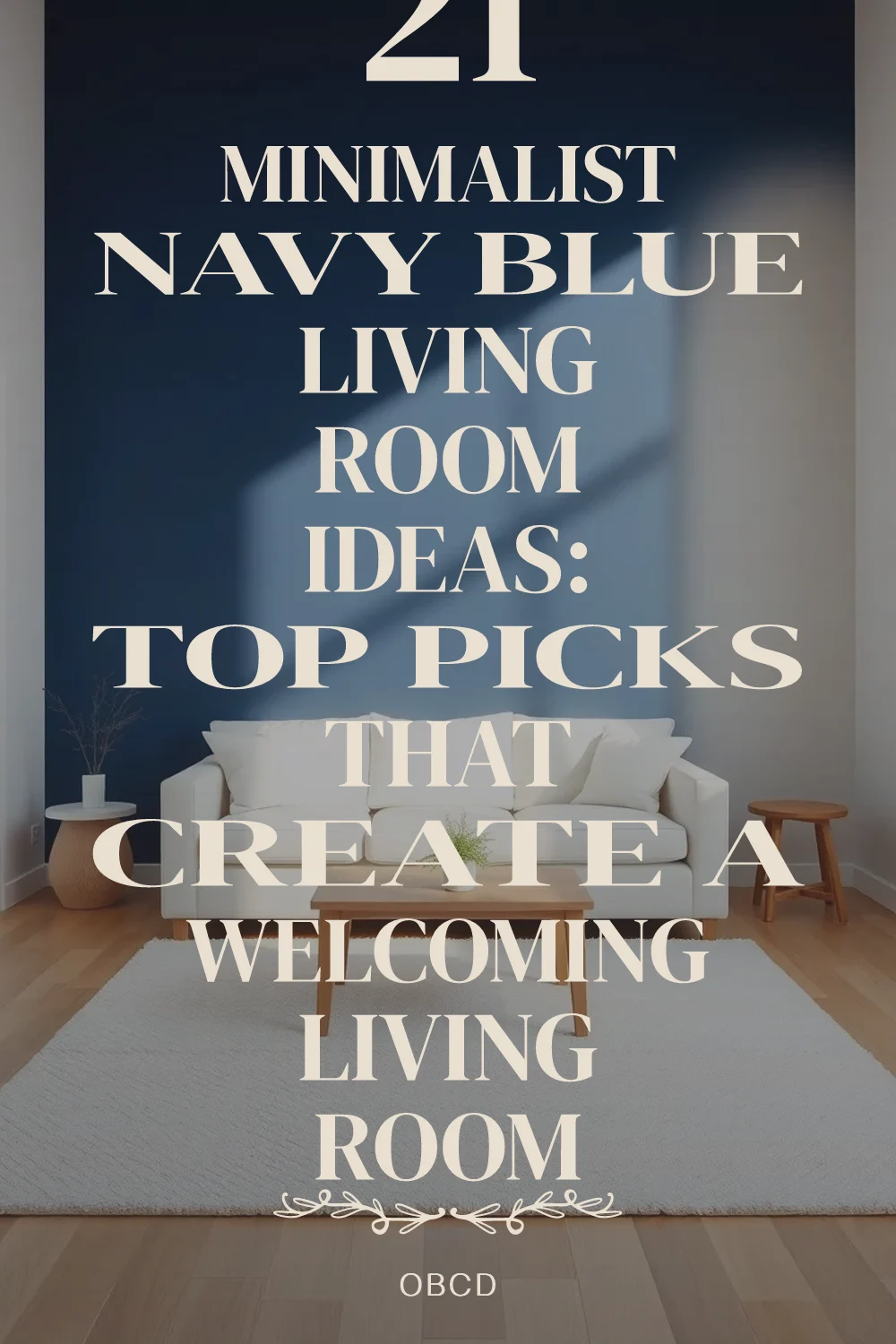 Pinterest cover for 21 Minimalist Navy Blue Living Room Ideas: Top Picks That Create a Welcoming Living Room