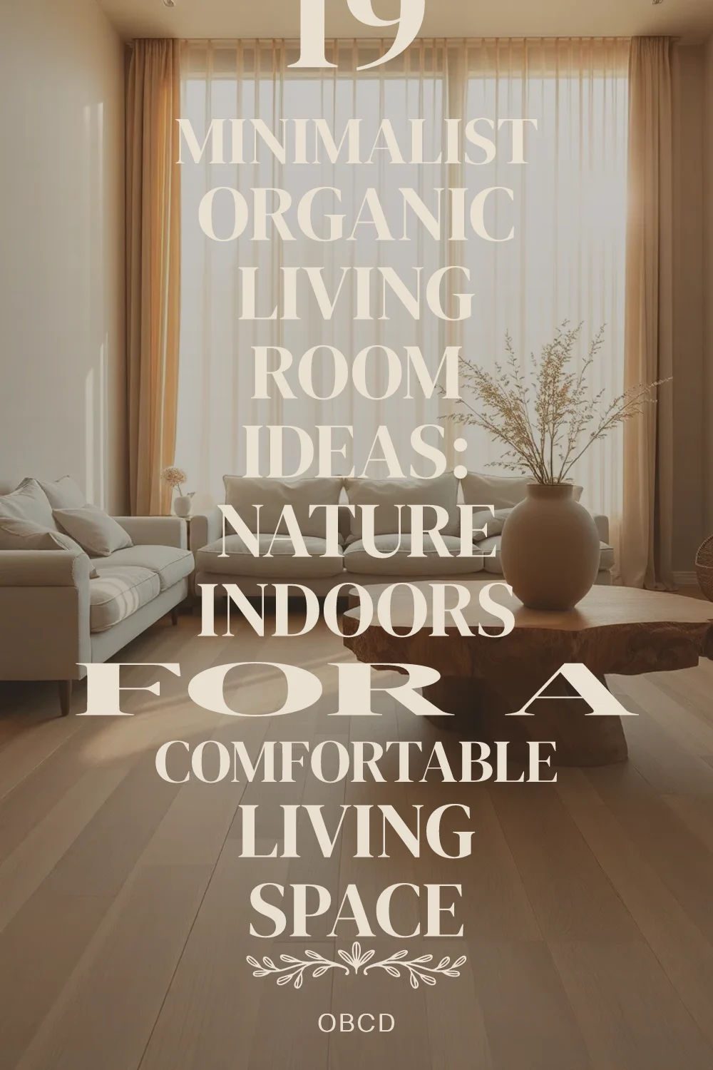 Pinterest cover for 19 Minimalist Organic Living Room Ideas: Nature Indoors for a Comfortable Living Space