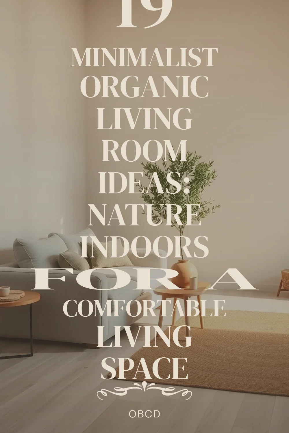 Pinterest cover for 19 Minimalist Organic Living Room Ideas: Nature Indoors for a Comfortable Living Space