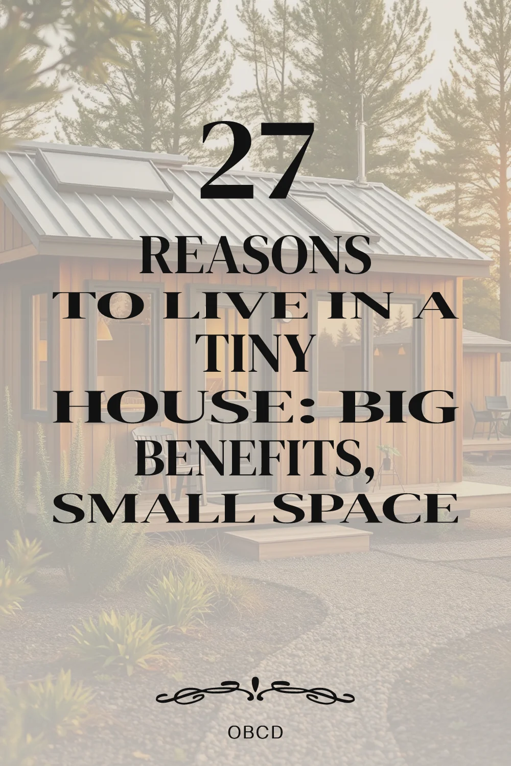 Pinterest cover for 27 Reasons to Live in a Tiny House: Big Benefits, Small Space