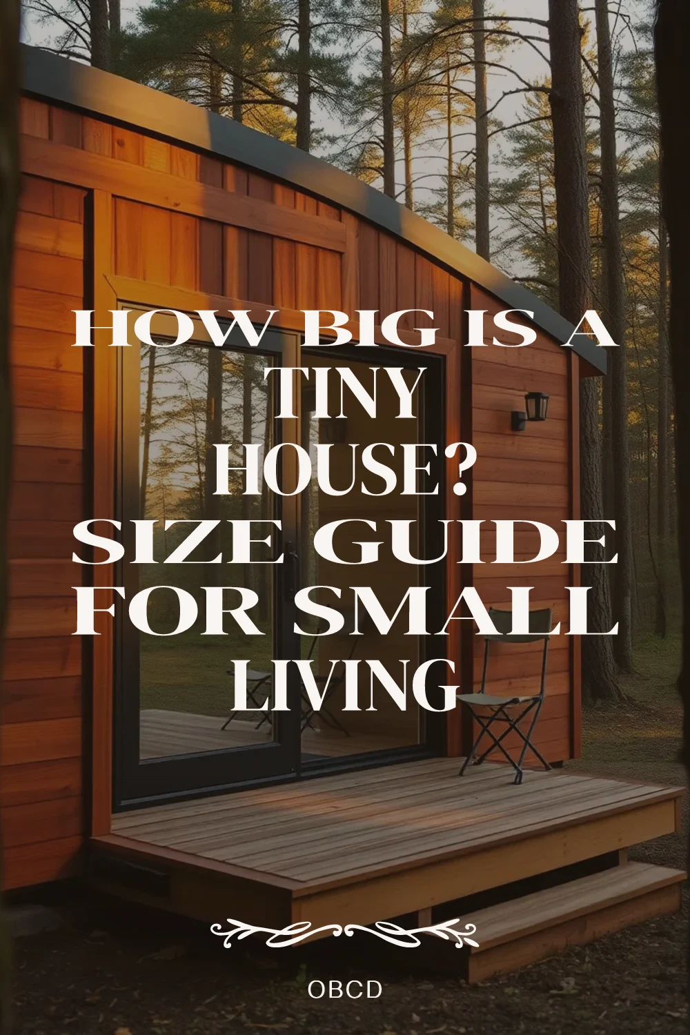 How big is a tiny house, exactly? Most tiny homes range from 80 to 400 square feet, with each size category offering unique advantages for compact living. Understanding tiny house square footage is the first step toward choosing the right layout for your lifestyle, needs, and budget.. Micro tiny house cabin exterior of about 80 square feet with cedar siding, large glass doors, and a small folding-chair deck nestled in a forest setting