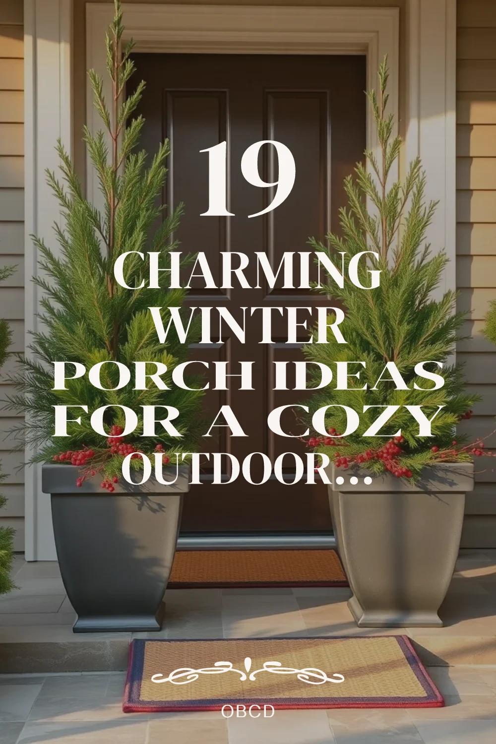Start with a layered foundation: a durable doormat, a large planter with evergreen boughs, and wall-mounted lanterns flanking the door. These three elements create immediate impact with minimal maintenance.