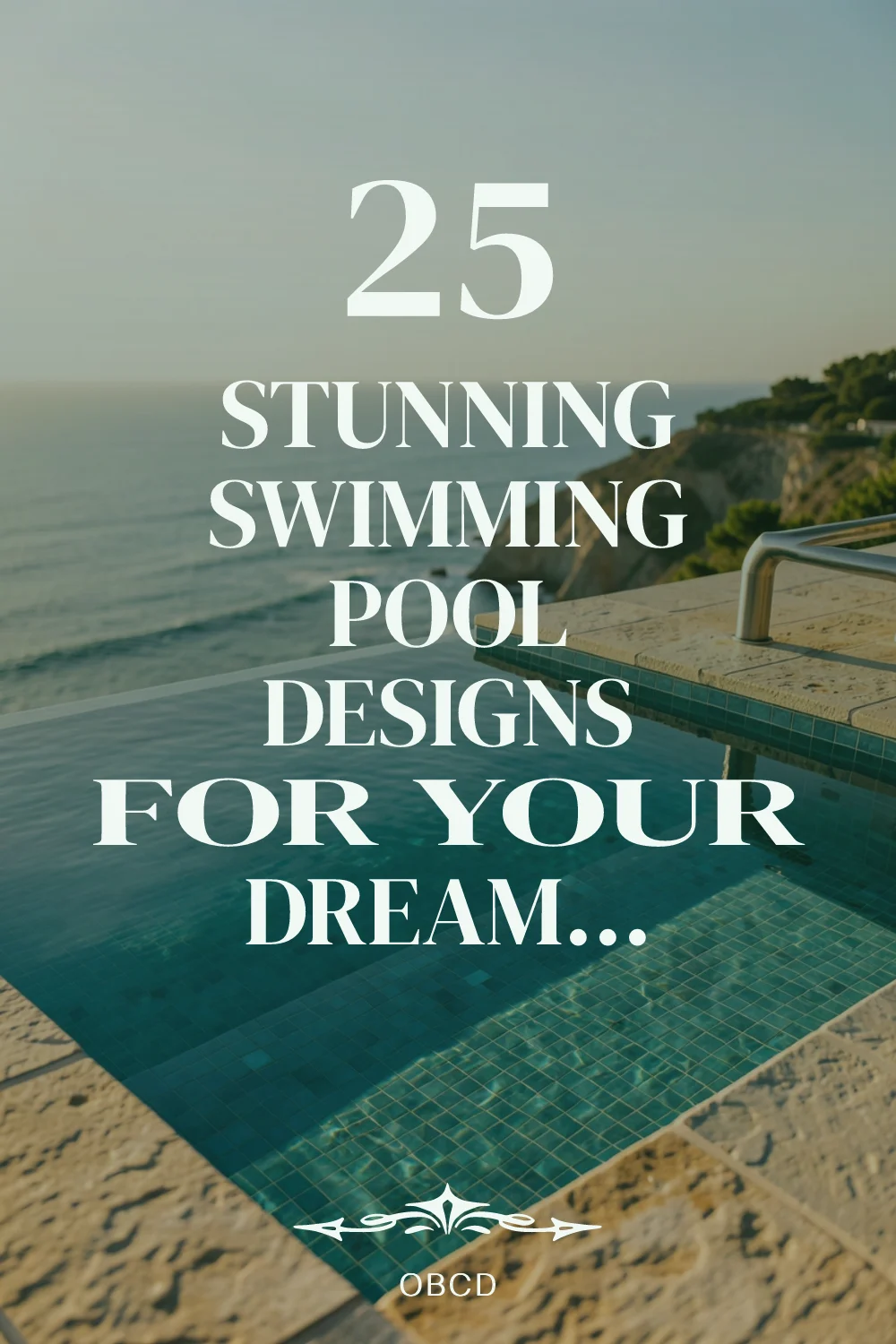 Pinterest cover for 25 Stunning Swimming Pool Designs for Your Dream Backyard for a More Thoughtful Home