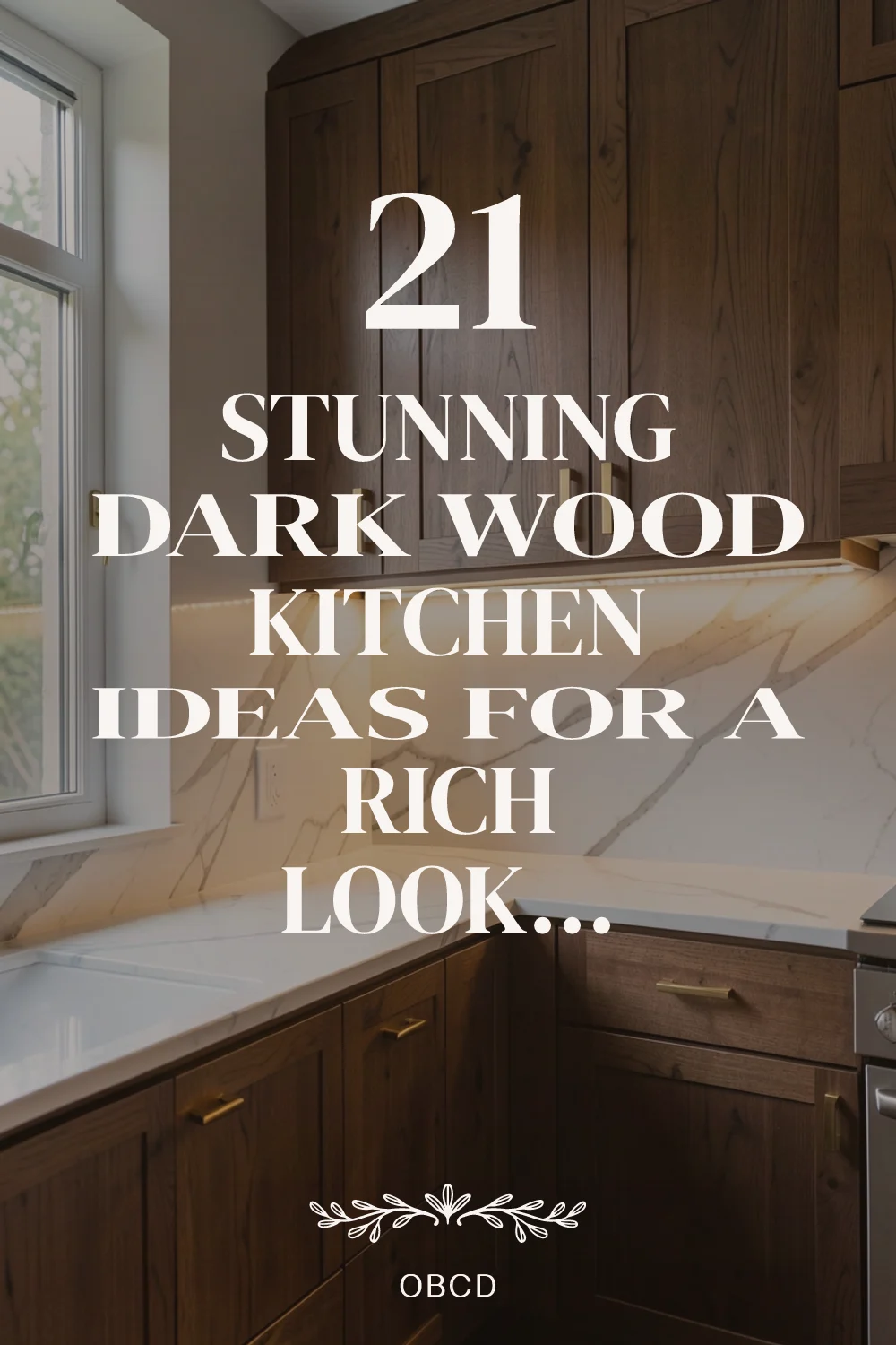The contrast between dark wood and light marble creates visual interest while maintaining a balanced, cohesive look. Consider white or Carrara marble countertops to brighten the space and reflect natural light, making the kitchen feel more open despite the dark cabinetry. For a warmer approach, opt for cream or beige marble that enhances the natural warmth of the wood.