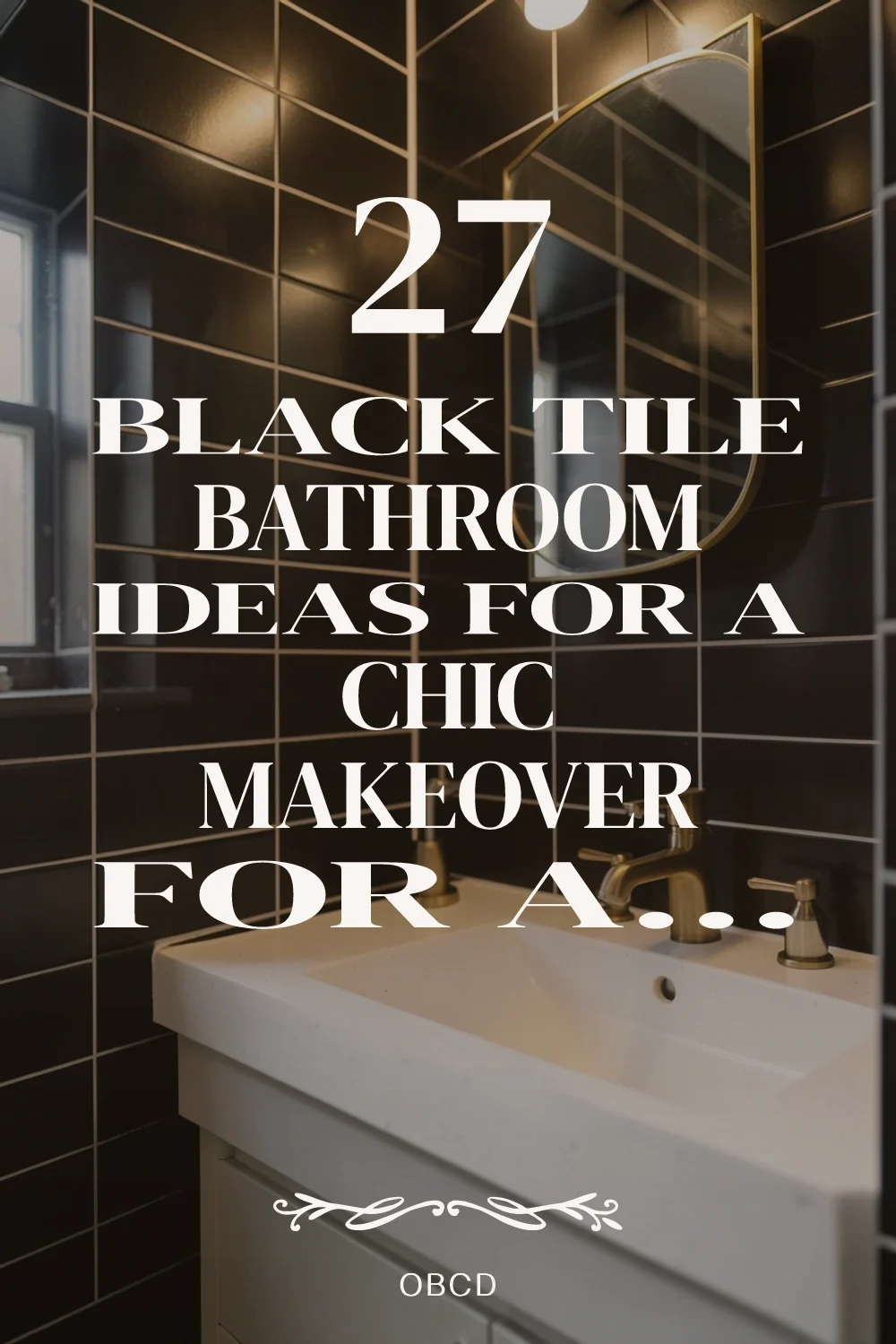 Pinterest cover for 27 Black Tile Bathroom Ideas for a Chic Makeover for a Calm and Modern Bathroom
