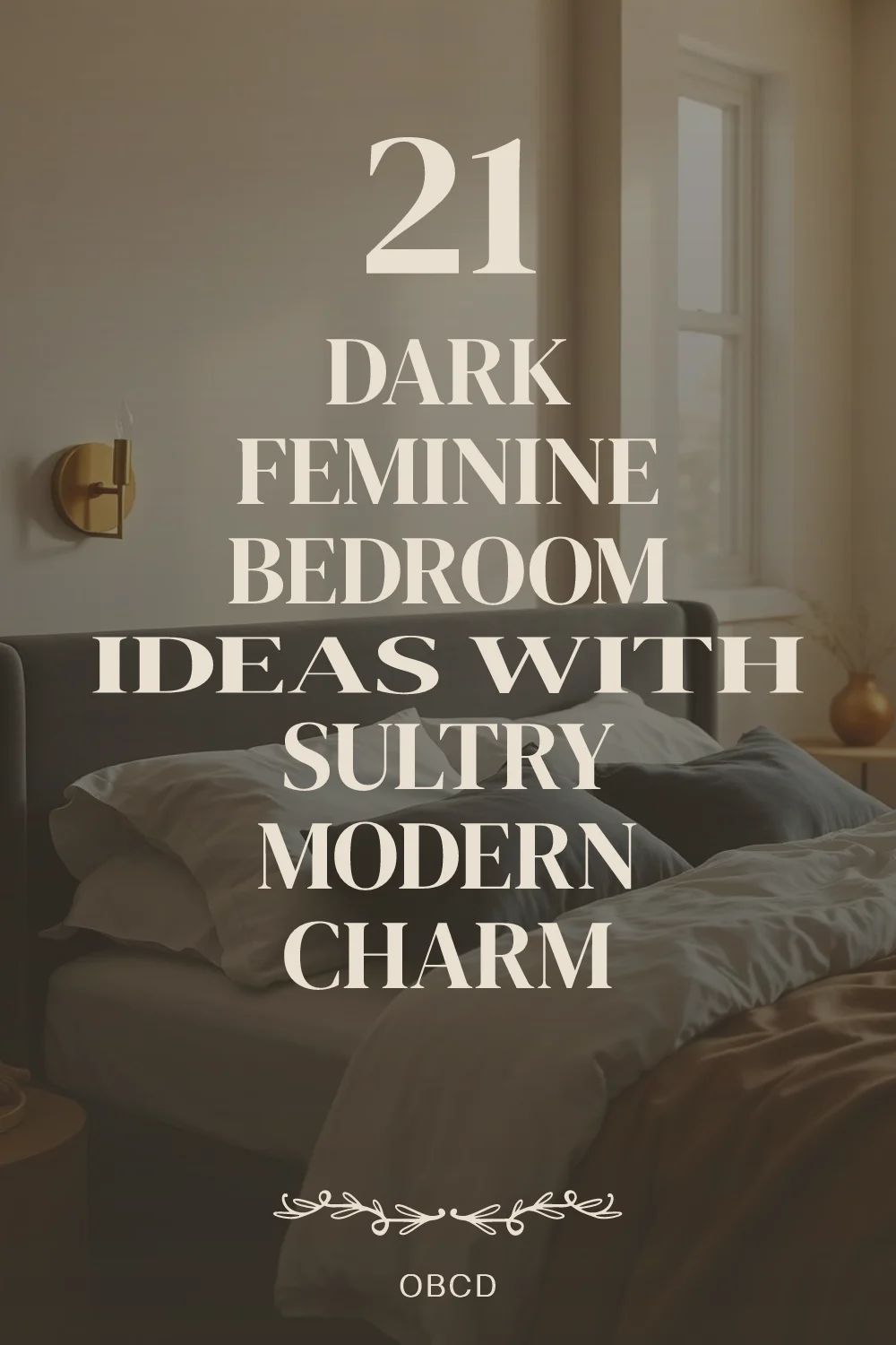 Pinterest cover for 21 Dark Feminine Bedroom Ideas with Sultry Modern Charm