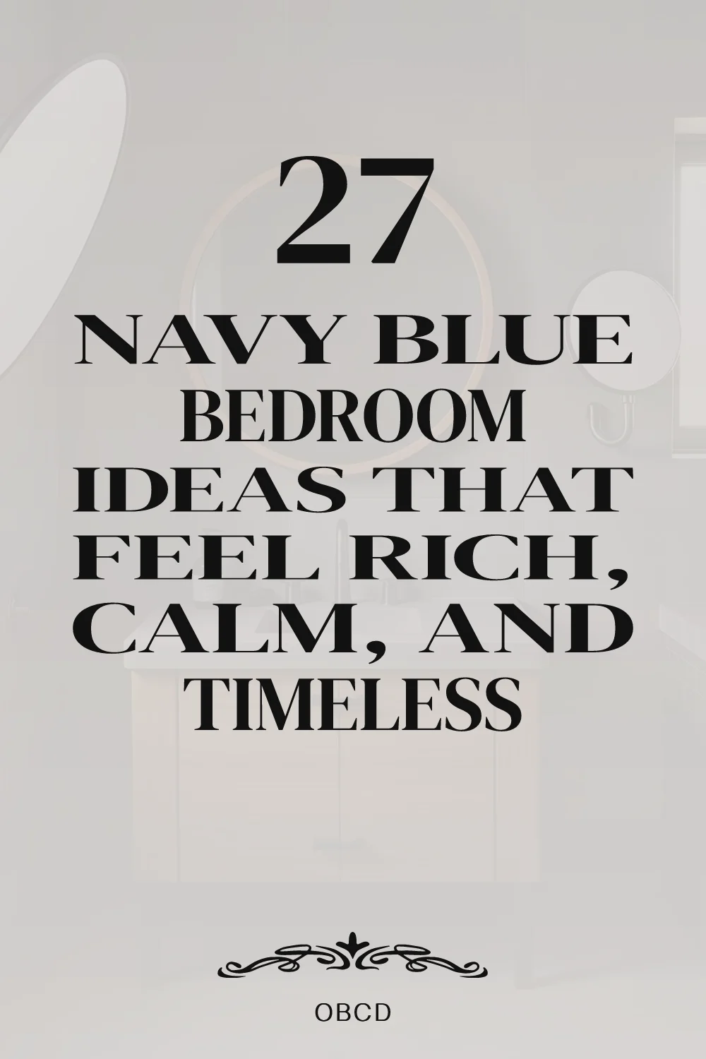 Pinterest cover for 27 Navy Blue Bedroom Ideas That Feel Rich, Calm, and Timeless
