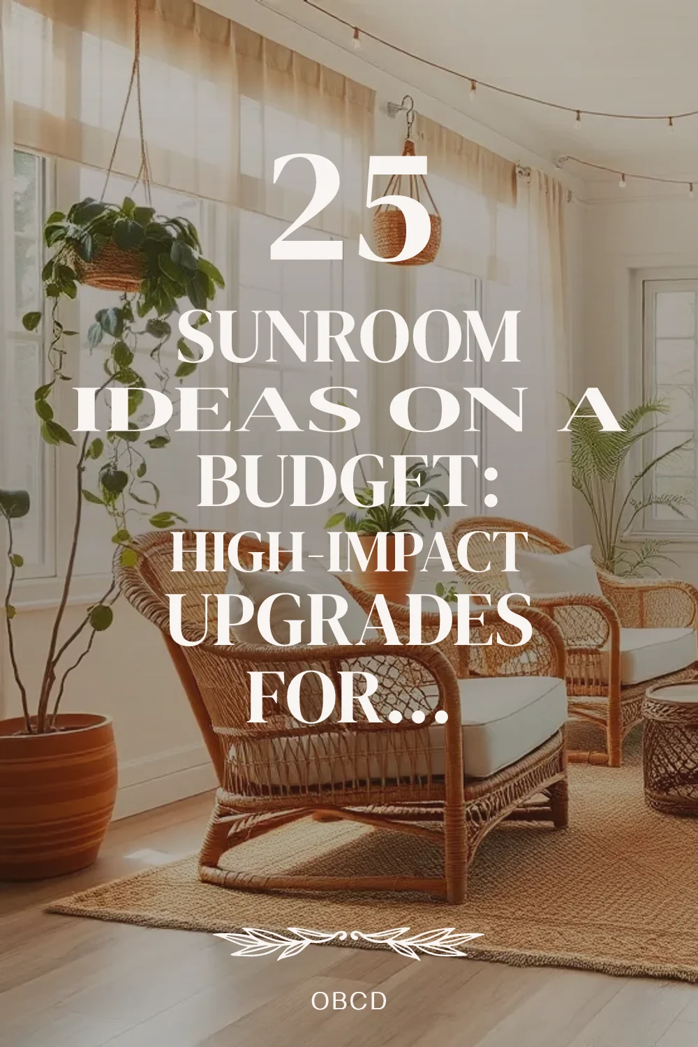 Pinterest cover for 25 Sunroom Ideas on a Budget: High-Impact Upgrades for LessAbout the author