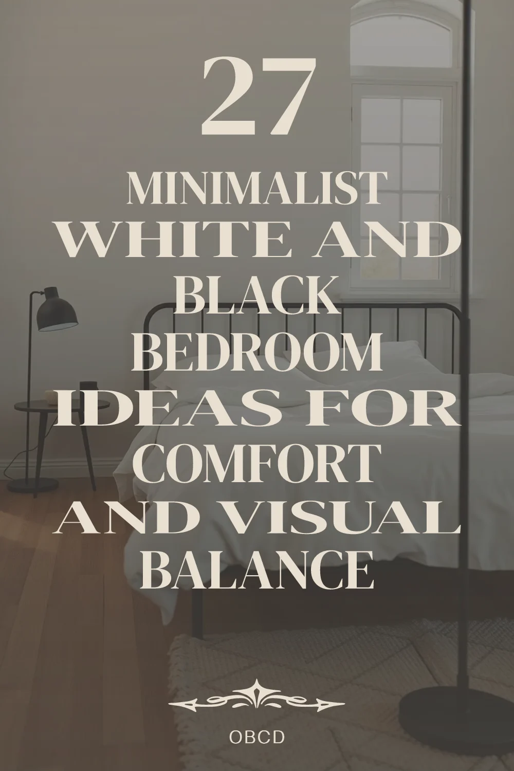 Pinterest cover for 27 Minimalist White and Black Bedroom Ideas for Comfort and Visual Balance
