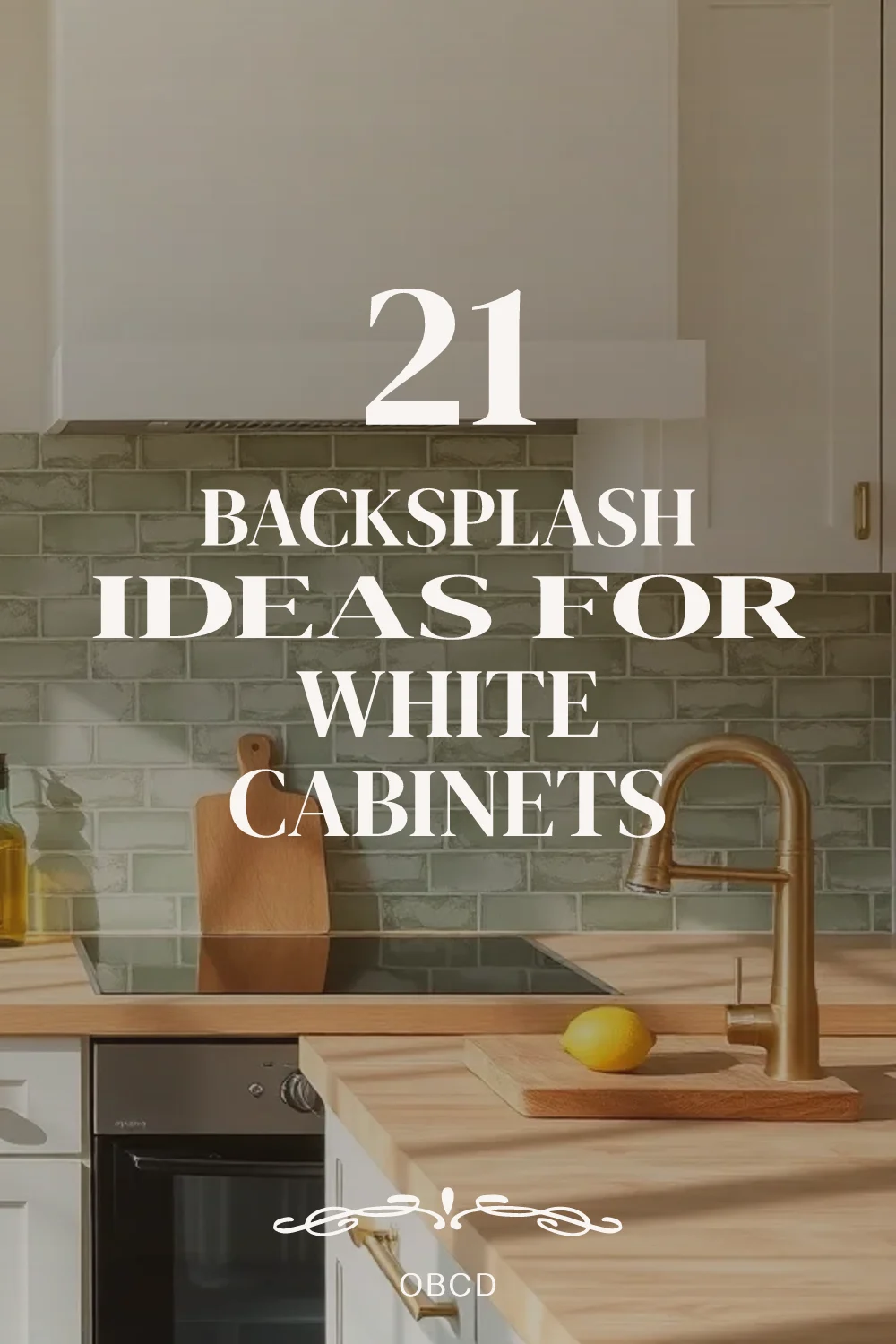 Pinterest cover for 21 Backsplash Ideas for White CabinetsAbout the author