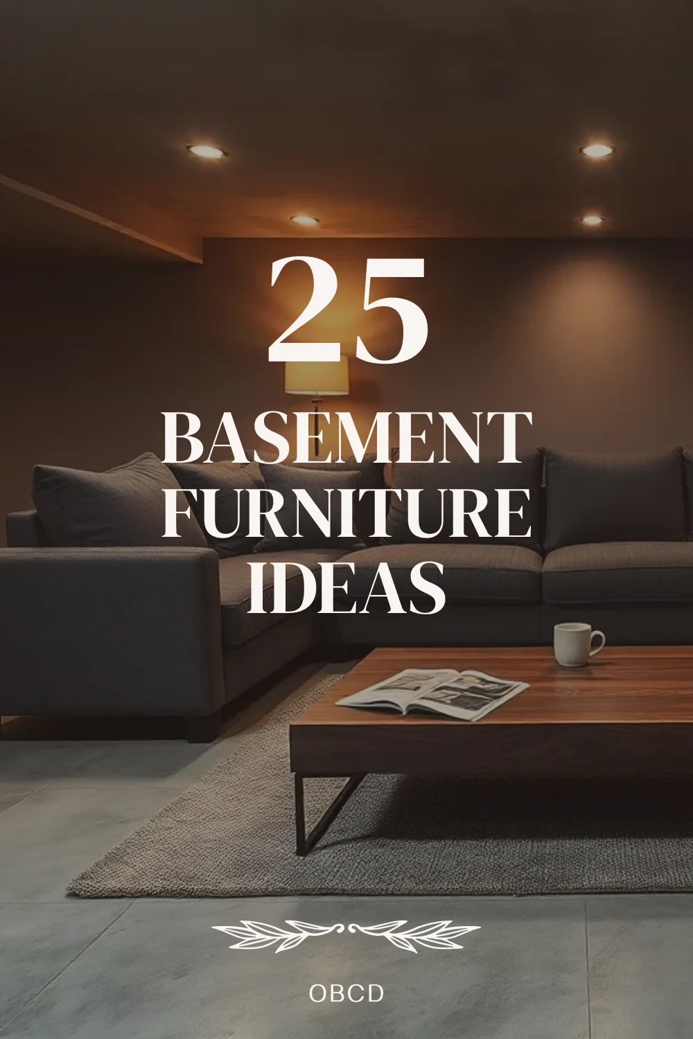 Pinterest cover for 25 Basement Furniture IdeasAbout the author