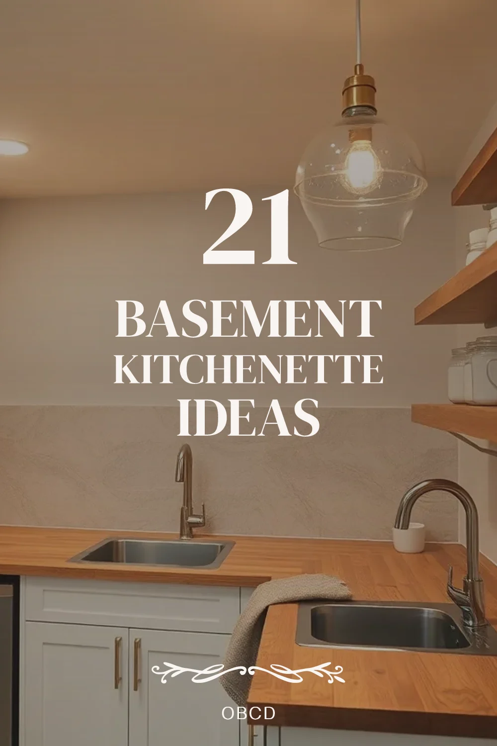 Pinterest cover for 21 Basement Kitchenette IdeasAbout the author