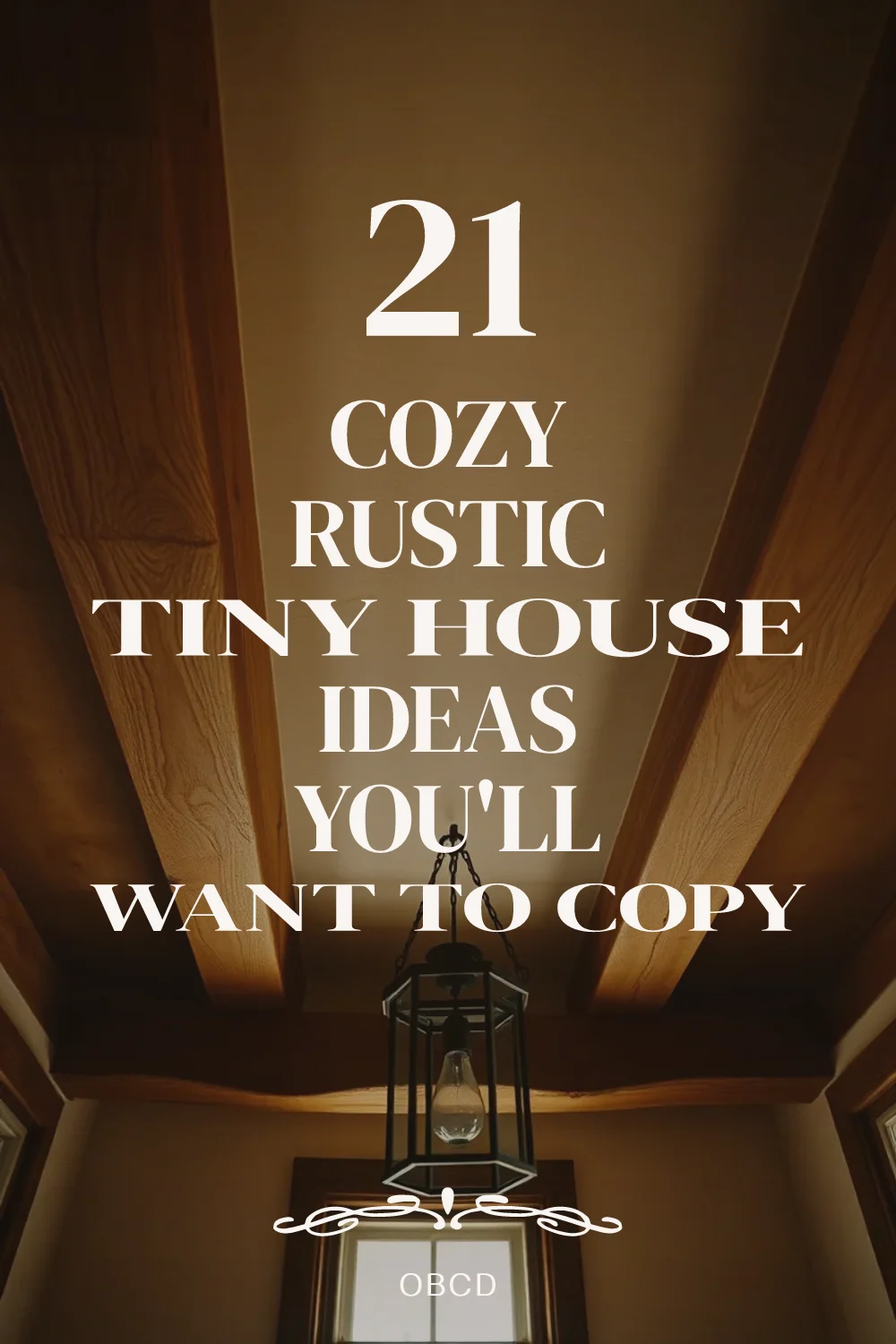 Hyper-realistic upward-angle view of exposed beam ceiling in rustic tiny house. Rough-hewn oak beams (6x8 inches) running parallel, natural wood finish with subtle grain and saw marks. White plaster ceiling between beams for contrast. Materials: aged oak beams, cream plaster, wrought iron pendant light. Warm ambient light from lantern and window, creating shadows that emphasize beam depth and texture. Shallow depth of field showing beam details and iron fixture. Authentic rustic timber frame mood.</p>